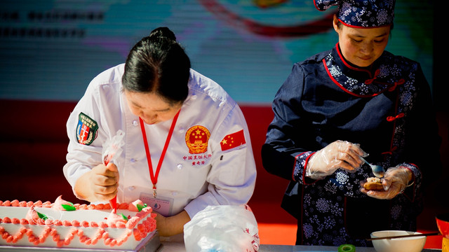 【大埔县第二届美食旅游文化节暨"粤菜(客家菜)师傅工程"千人长寿宴】在梅州大埔举行。千人长寿宴由大埔小吃文化城以罗秋航师傅为代表的大师工作室,联合大埔县田家炳高级职业学校、瑞锦职业培训学校的学员共100名厨师同场展艺。现场举行了“中国首个客家菜研究培训基地”颁发仪式,中国食文化研究会授予大埔县瑞锦酒店“中国食文化研究会客家菜(大埔小吃)研究培训基地”的荣誉称号,还有国宝级大厨朱永松现场赠书授艺,面点绝技再现江湖、小熊妈妈爱心早餐、百名厨师同台展艺等环节。更有各种民俗文化表演,边吃千人长寿宴,边看表演,活动在彰显大埔特色的同时,推动大埔旅游资源的整个与发展。