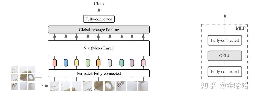 文章中的MLP layers区分成了两种,channel-mixing MLPs and token-mixing MLPs