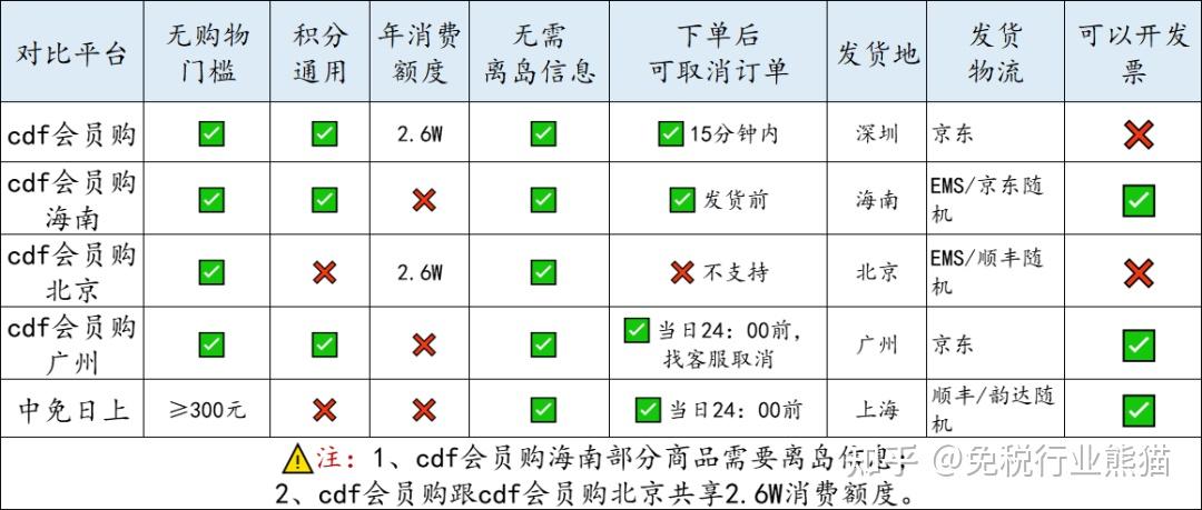 一张图搞明白cdf会员购/海南/北京/广州/日上平台的差异,新手必看!!