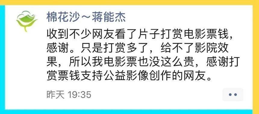 在网络观看,效果远比不上电影院,随喜给个五元十元足够了,很多网友给了三五十,已经抵得影院一场票钱,蒋能杰觉得网友给多了。