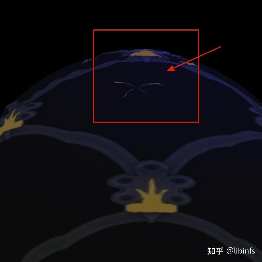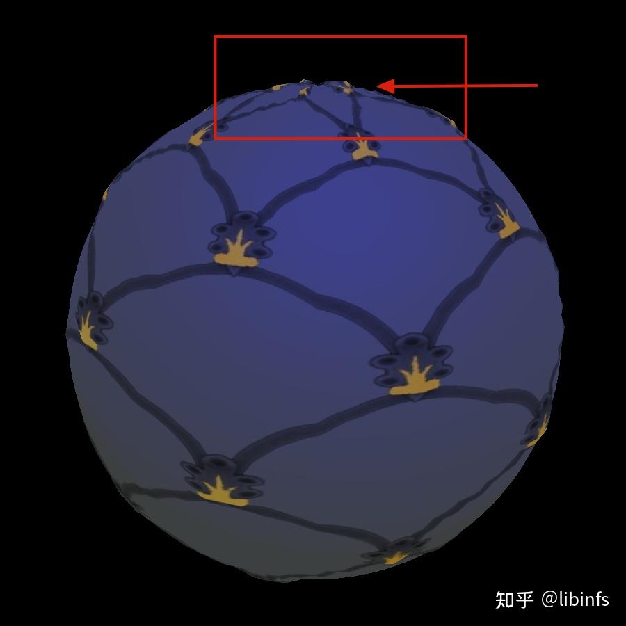 让我们放大球体的一部分,可以看到更明显的透视效果: