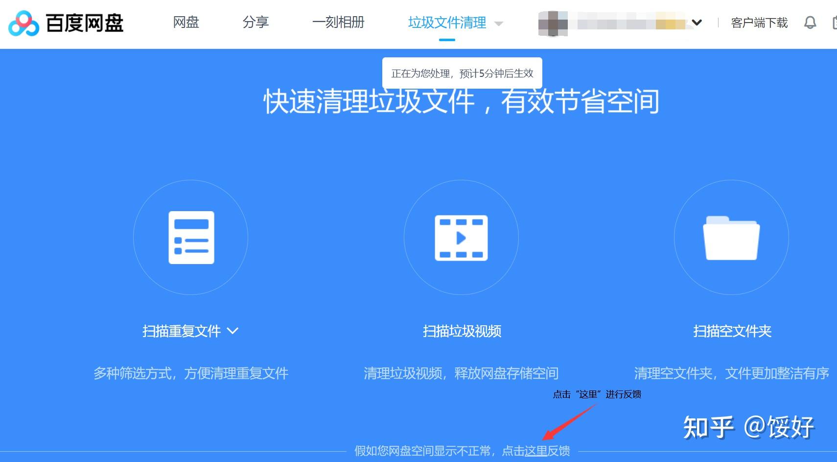 百度网盘仍然显示存在几十兆M的文件未清理,如下操作: