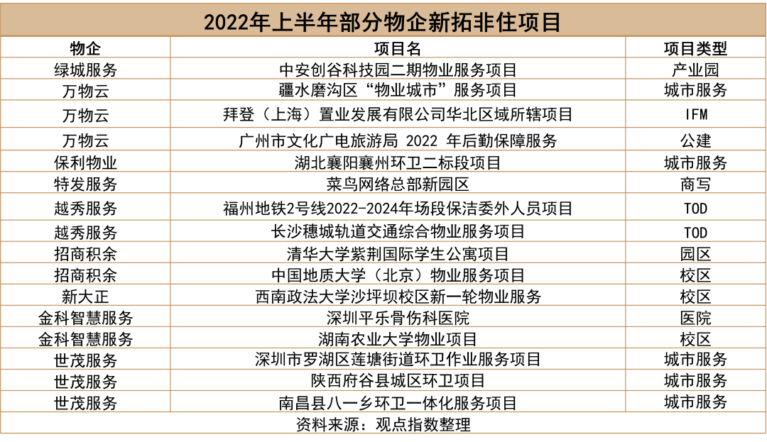 2022年上半年,地产行业的波动给物业服务行业带来了较大冲击,企业加紧开拓公建、产业园等非住宅领域,并加快入局城市服务赛道。