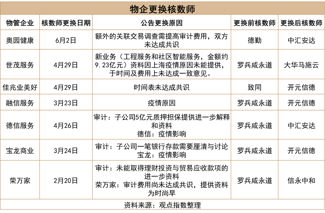 上市物业企业频繁出现了年报迟发以及更换核数师事件,除了受疫情干扰外,更多原因在于物业企业今年财报审计遇到阻碍。