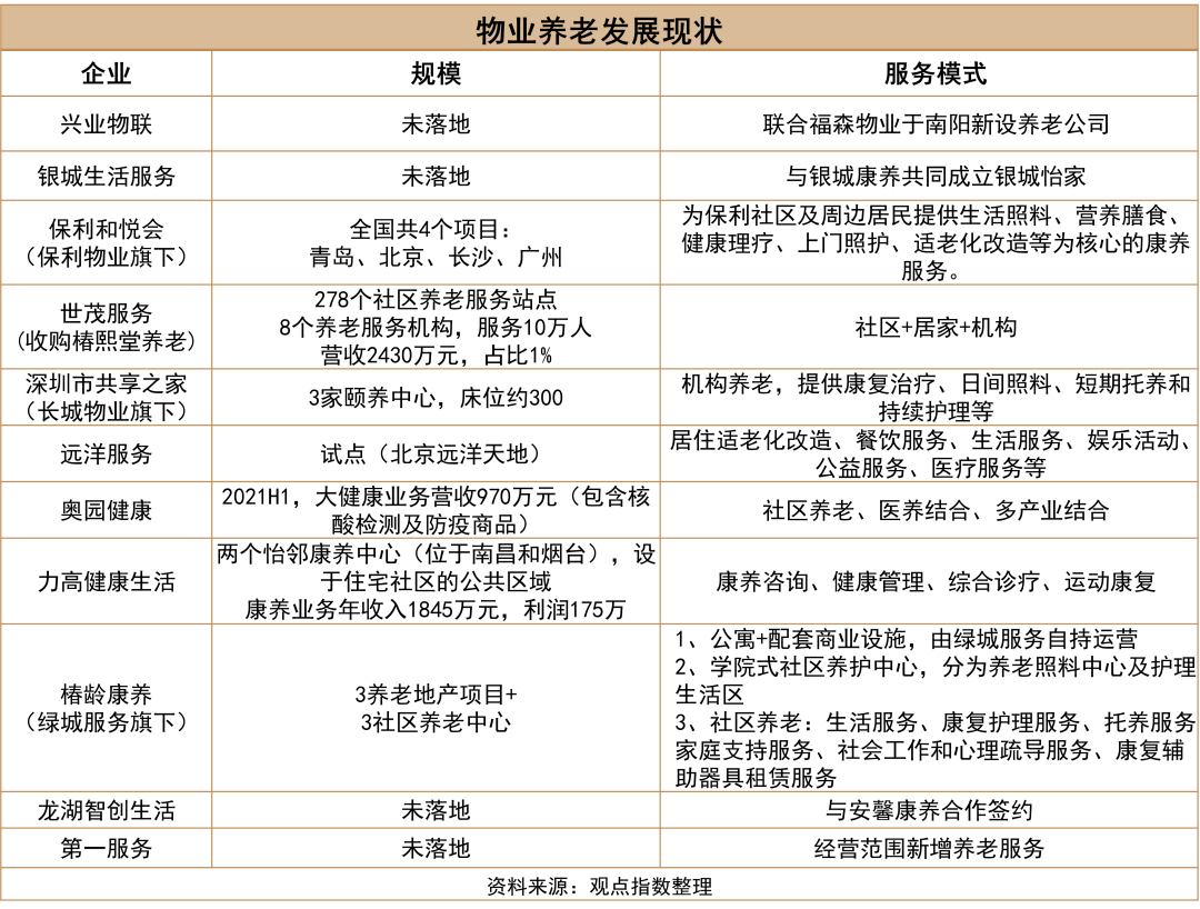2022年上半年,多家物业公司也在养老领域有所动作:龙湖物业与安馨康养进行了战略签约、兴业物联与福森物业在南阳新设养老公司、远洋服务则在“物业服务+养老服务”的试点中有所行动。