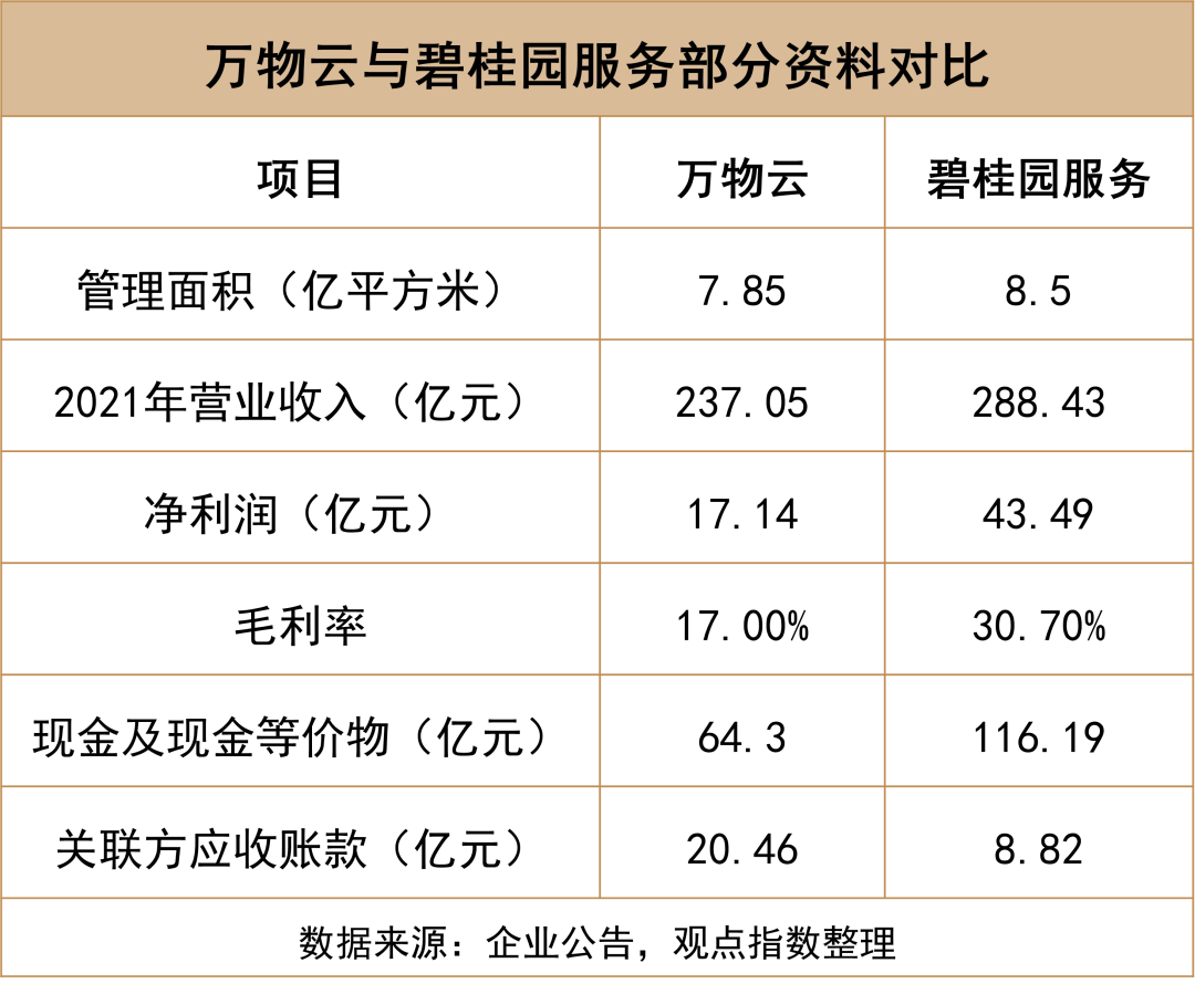 从特点来看,万物云是行业龙头,主打科技与城市服务等概念,关联方有国资背景,与行业另一龙头碧桂园服务相比,利润率更低,也低于目前已上市物企的普遍水准。管理规模上,也已被碧桂园服务超越。