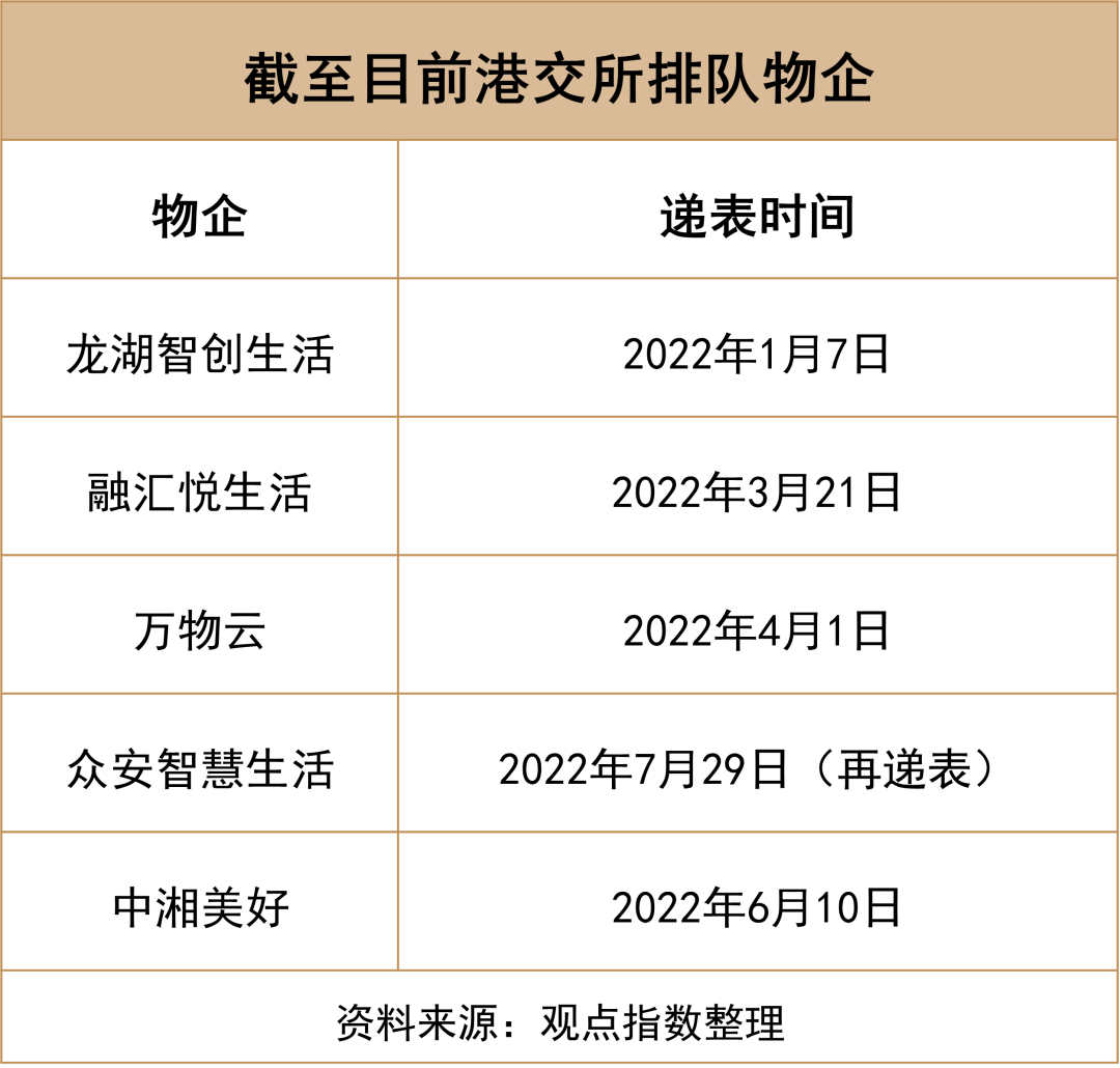 随着大量递表物企被收购以及招股书过期,排队企业数量已由巅峰期的23家下降至目前仅5家,以往在港交所争相排队上市的热潮已不在。