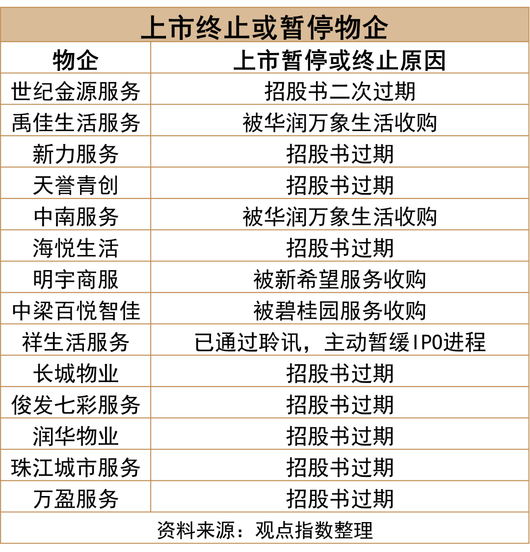 大宗收购案频繁发生同时,亦有包括中南服务、中梁百悦智佳以及明宇商服在内多家已向港交所递表的物业企业,在上市进程中转而选择将企业股权出售而上市终止。