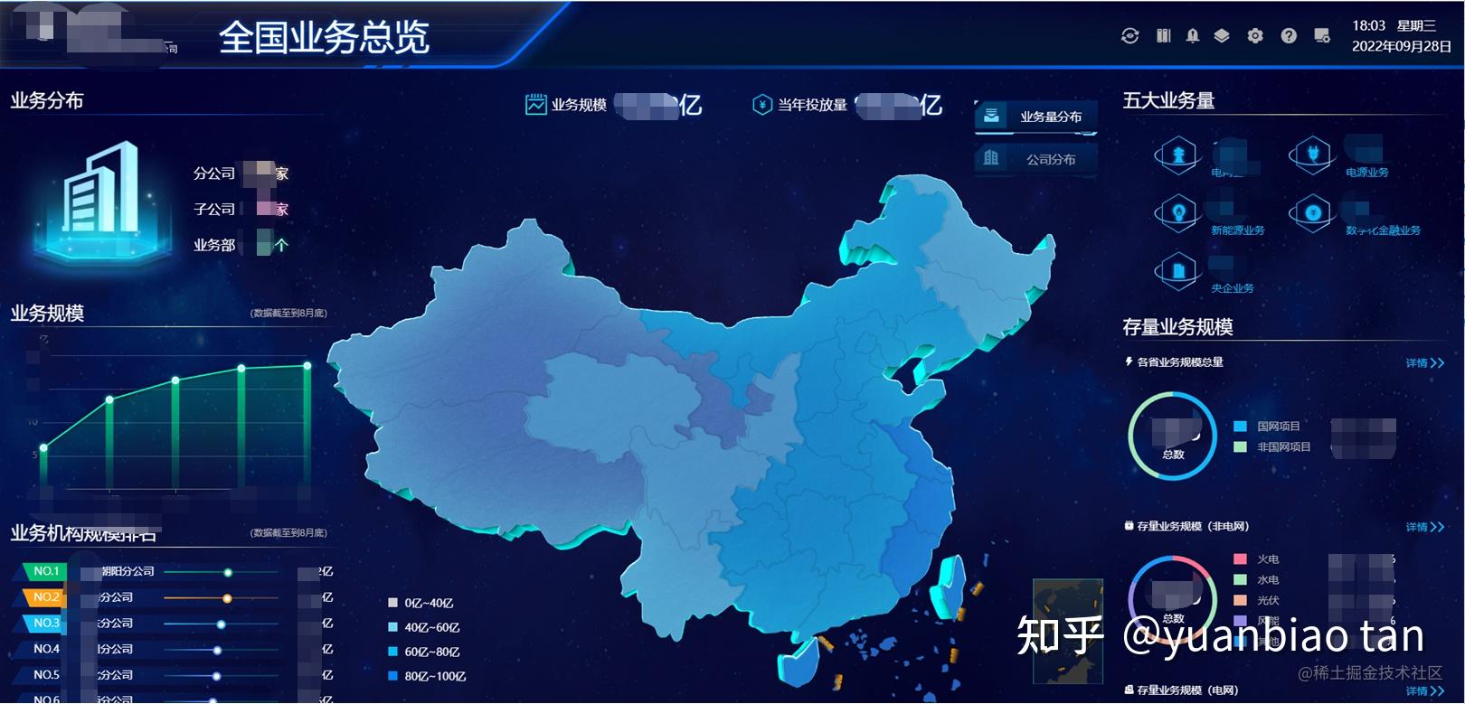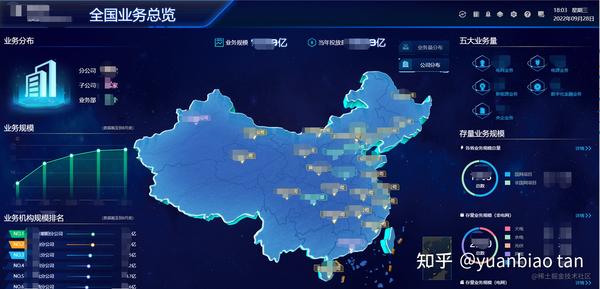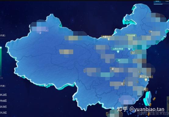 这是最近公司的一个项目。客户的需求是基于总公司和子公司的数据,开发一个数据展示大屏。 大屏两边都是一些图表展示数据,中间部分是一个三维中国地图,点击中国地图的某个省份,可以下钻到省份地图的展示。 地图上,会做一些数据的标注,信息标牌。 如下图所示:
