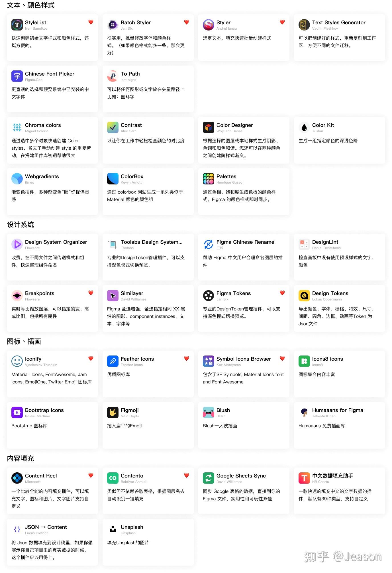 Figma的插件你生态非常丰富,再此也推荐一些用过的,特别喜爱的插件我标了个心: