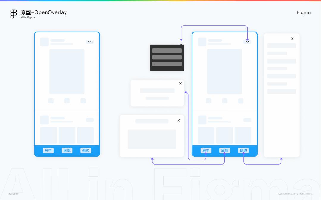 例如,给父组件Close添加一个点击事件响应关闭浮层的操作,无论你是居中的弹窗,还是底部画出的,乃至是右侧画出的,只要在界面的浮层中使用到Close的组件都可以响应关闭浮层的交互动效。