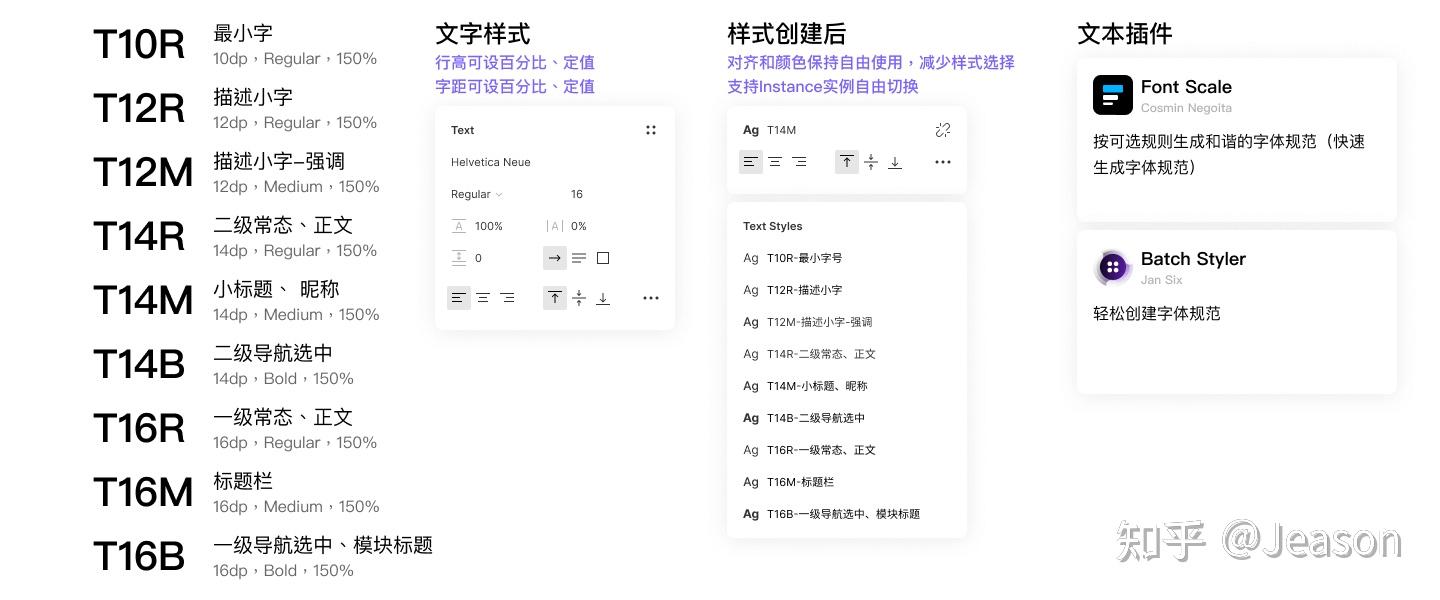 在构建文本系统的时候,也可以借助如Font Scale插件按照1.2、1.5、1.618等规律生成和谐的字体规范;如Batch Styler可以批量修改字体、颜色规范。