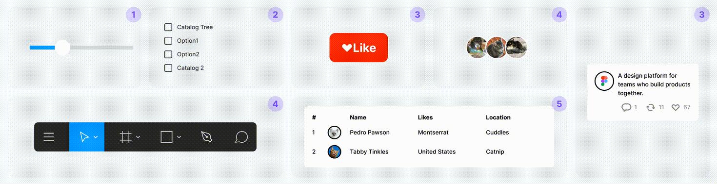 此外对常用的头像、素材、图案作为填充预设,方便组件变体调整切换,避免使用插件产生随机的图像填充。