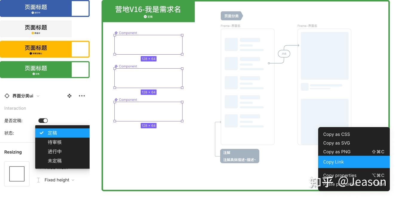 此外Figma对每个Frame都可以生成一个指向链接,那么右键这个框架就可以直接拿到链接,分享给产品开发,十分方便。