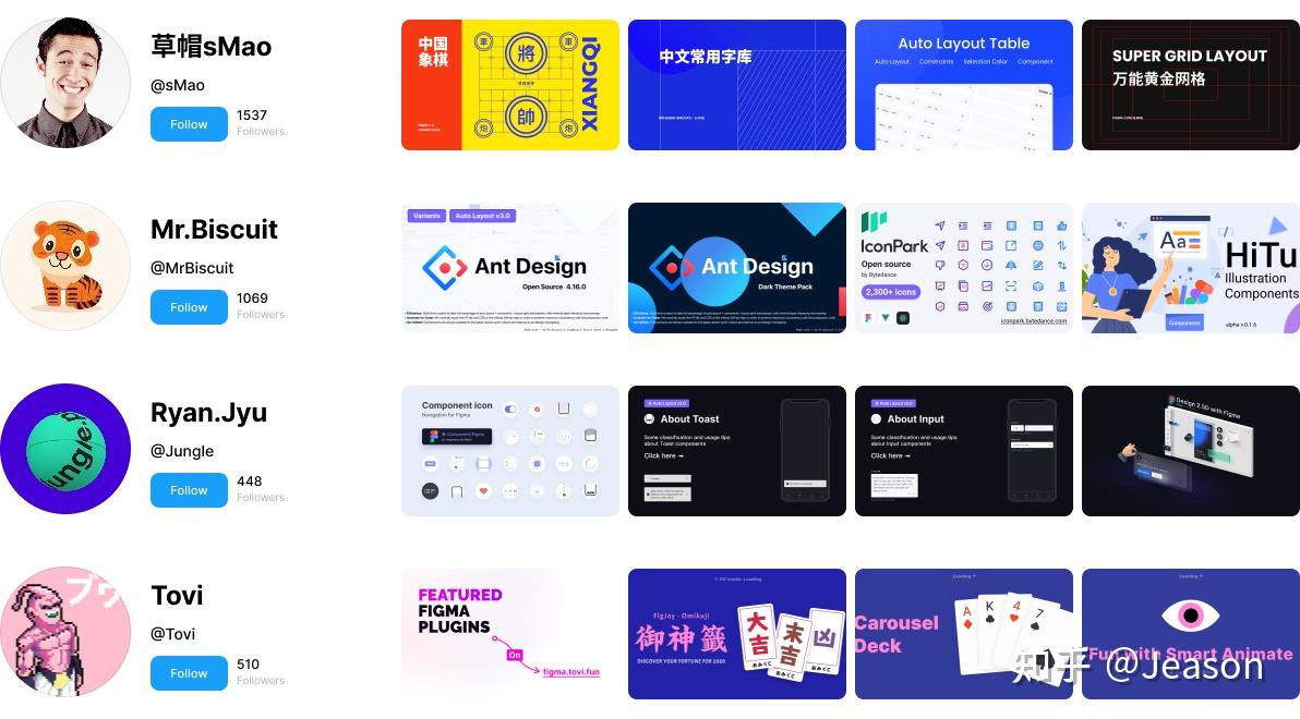 在国内,主要关注了 草帽SMao、Mr.Biscuit、RyanJyu ,这些也是在Figma at Tencent的一次交流会上了解了更多。