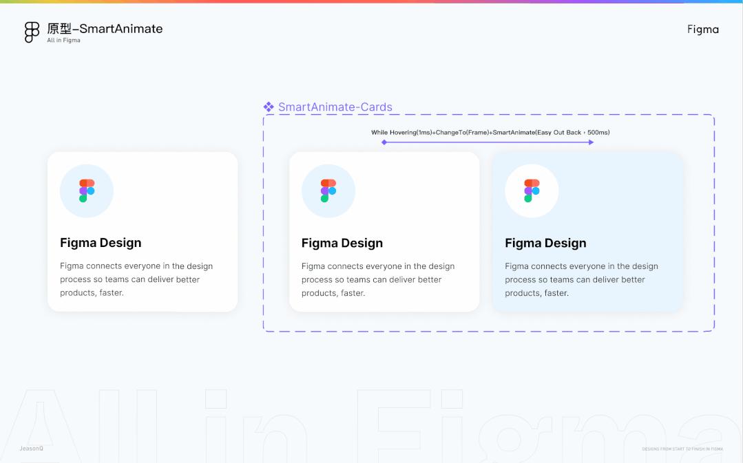 在使用Figma后,可以在做完视觉后直接做高保真的交互Demo,一定程度上避免了不同软件的学习成本,提升了图层元素、效果、源文件等转换效率 。 此外,Figma的组件变体还支持做交互状态的变化,大大地提升了做交互Demo的效率。