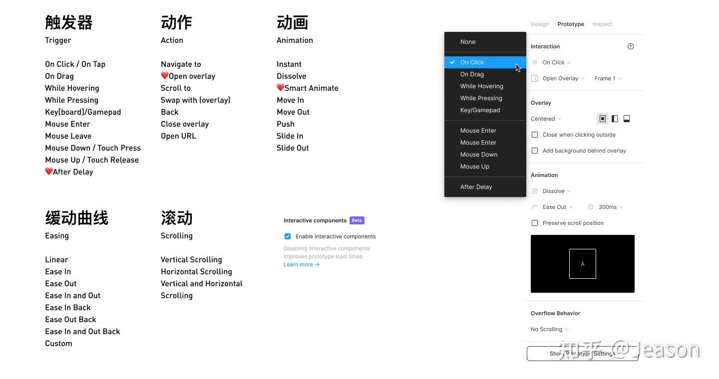 - 对动效的解析: 提供触发器、目的地、动画、缓动曲线、时长等描述。