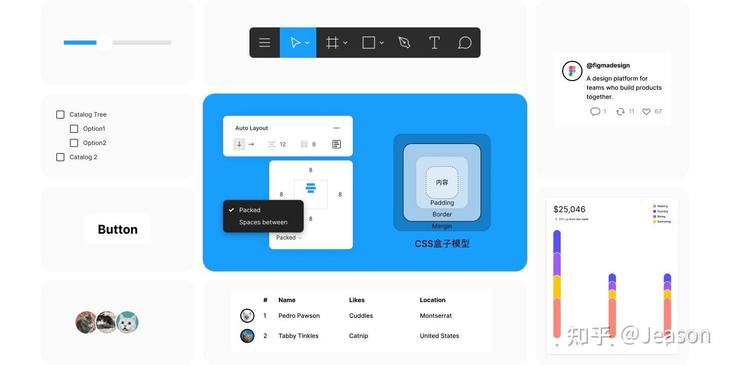 由于大部分的设计工具都差不多,常用的文本、颜色、形状的各种操作在此就不再赘述了。Figma中的设计主要讲设计系统。