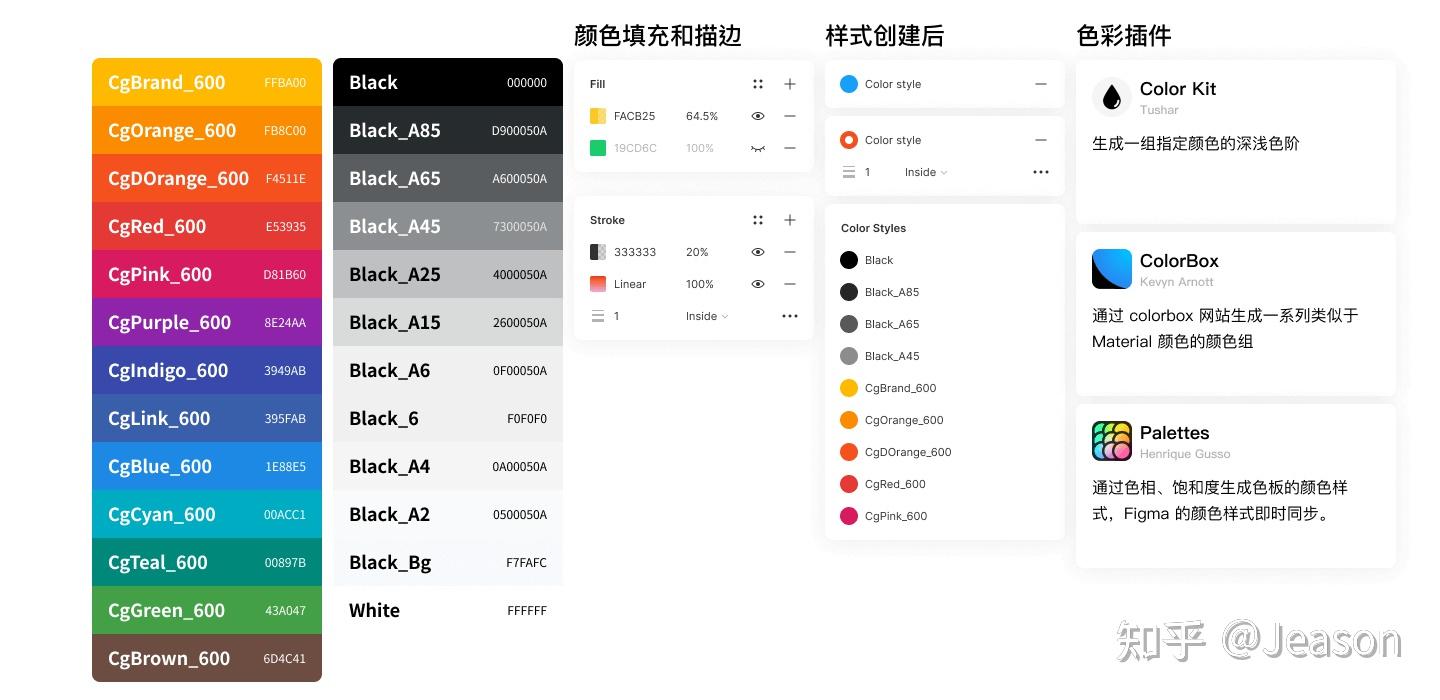 Figma的颜色样式, 可以自由应用在颜色、描边、字色上 ,描边属性可以在实例上自由的设定粗细,类型,线头线尾样式等。