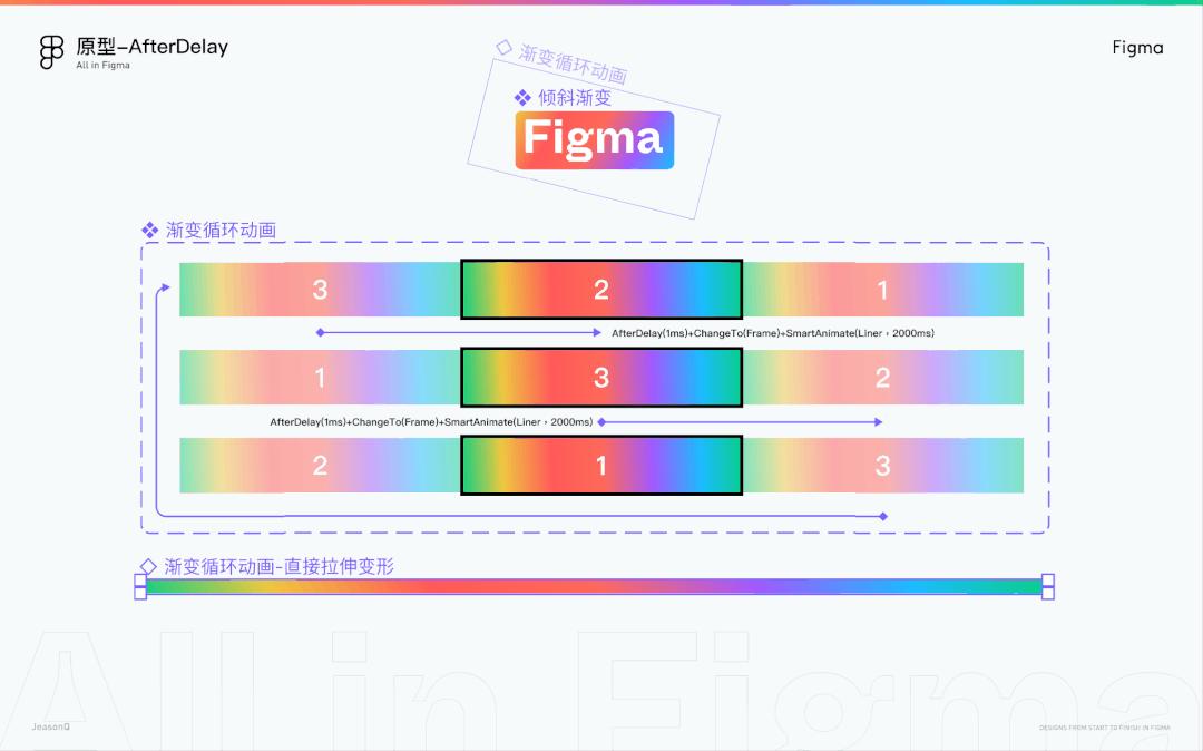 附上整个PPT-Figma的分享链接,大家可以duplicate复制一份以后,点击右上角播放原型,查看ppt里的动效制作,自制了循环动效(顶部、封面封底的彩虹循环)、PPT备注交互(按P可以显示当前页的备注)。觉得好的话记得点赞哟~欢迎随撩~