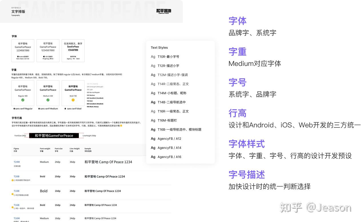 字体样式配以对应的中文注释,最终形成体系如T12R、T12M、T12B等见名知意的字体代号。在方便开发使用代号的同时,加快设计的统一判断选择。
