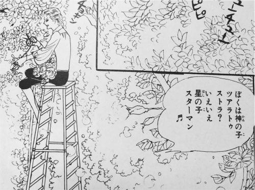 - 池田理代子《奥尔菲斯之窗》、木原敏江 《摩利与新吾》 、山岸涼子《日出处天子》以及萩尾望都、BELNE《苍男》的人设原型都是Ziggy Stardust。