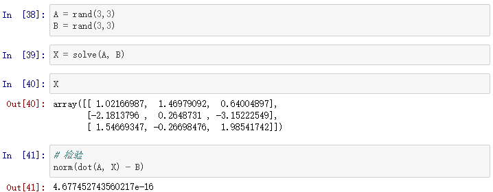 线性代数部分包含了许多矩阵函数,包括线性方程的解,特征值的解,矩阵函数(例如矩阵指数函数),许多不同的分解(SVD,LU,cholesky)等等。详见: http://docs.scipy.org/doc/scipy/reference/linalg.html.