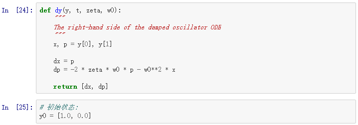 当我们定义了Python函数 f 和数组 y_0 ( f 和 y(0) 都是数学函数),我们调用odeint函数: