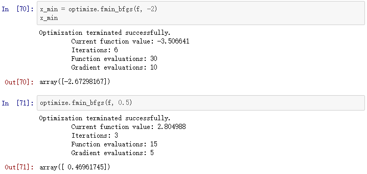 我们可以用fmin_bfgs寻找函数的最小值: