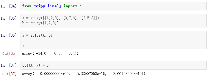 如果我们只需要用scipy框架中的一部分,我们也可以选择性的导入。例如,只导入线性代数函数包la,我们可以: