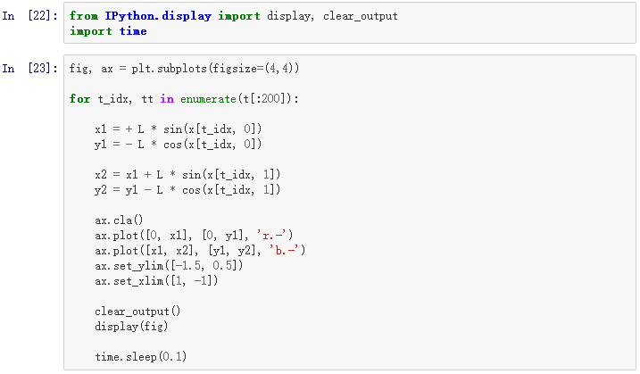 在matplotlib函数的应用中,会介绍如何绘制复摆运动的动图。