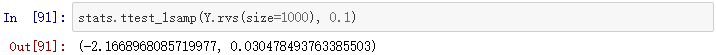 p值很小,意味着我们可以拒绝原假设(Y的均值为0.1)。
