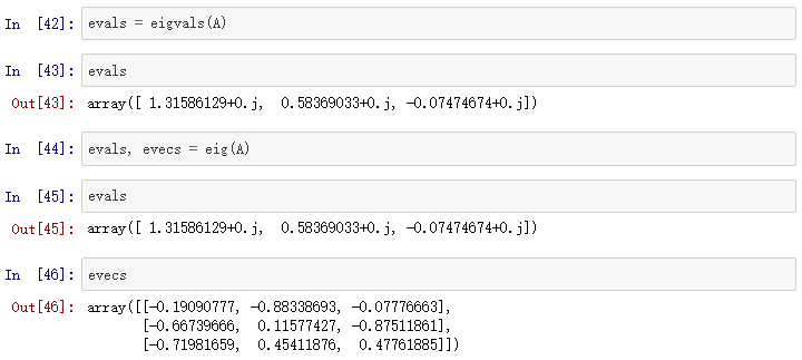 用eigvals计算矩阵的特征值,用eig计算特征值和特征向量: