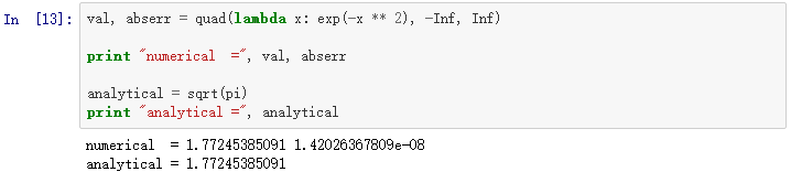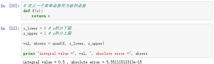 对于简单函数而言,对于被积函数,我们可以用λ函数(无名称的函数)来代替清晰定义的函数: