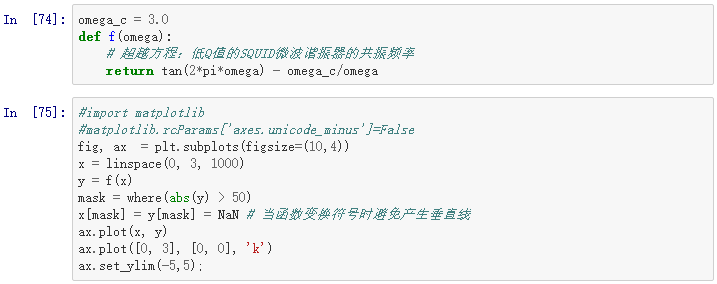 为了寻找函数f(x) = 0 的解,我们可以用fsolve函数,它需要一个初始的猜测值: