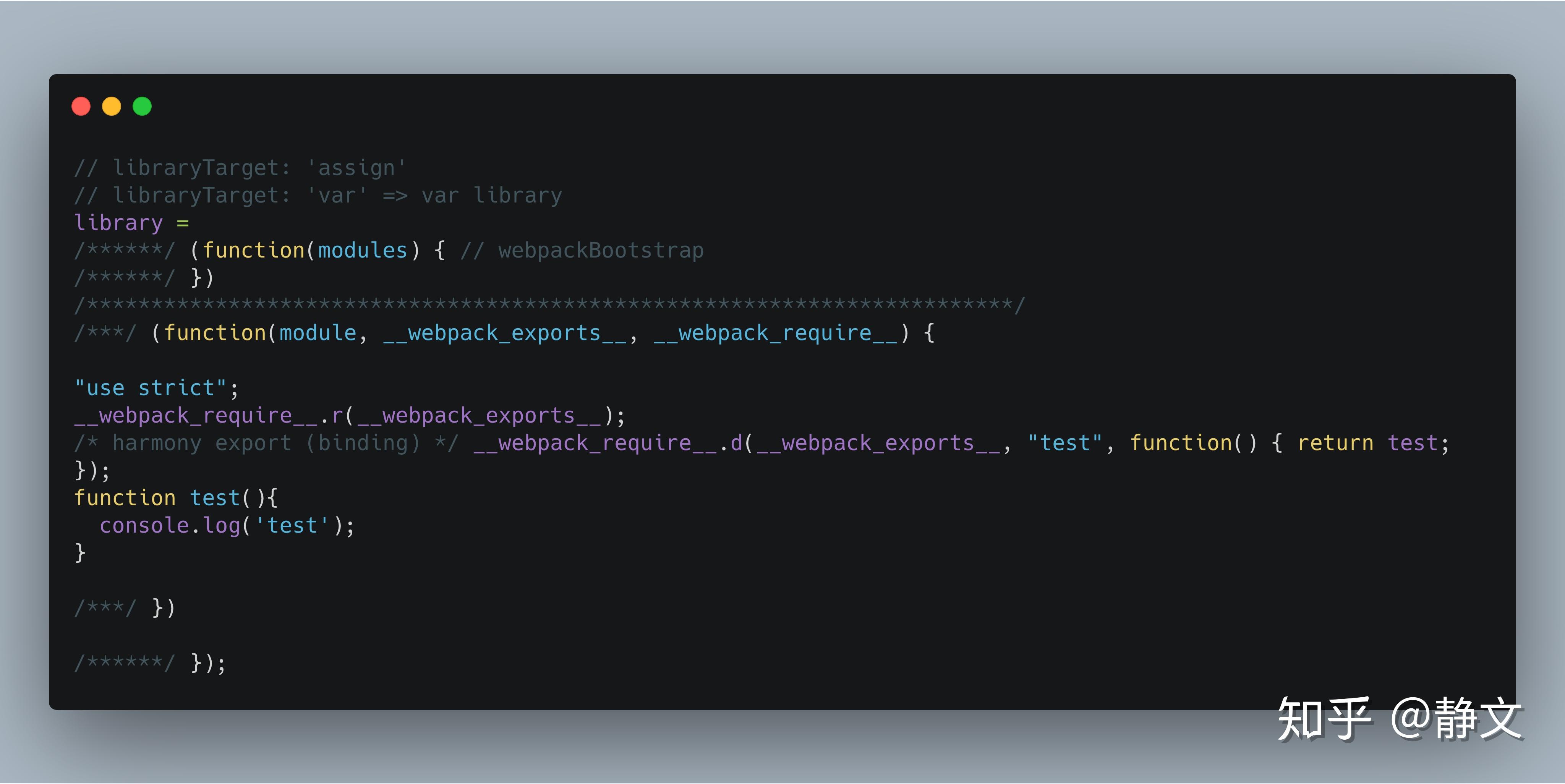 观察一下libraryTarget:“assign” or “var”产出的代码,只是创建了一个library里设置的变量,然后通过webpack的方法做一个导出。