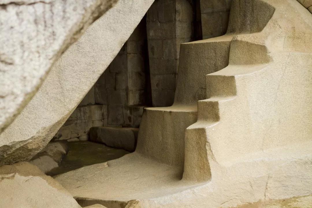 太阳神庙正下方的 皇家陵墓 是马丘比丘 最重要的墓葬之一 ,坚硬的岩石雕刻而成的阶梯状结构、精雕细琢的石壁、壁龛和岩钉,都昭示着它的地位。不同于一般的封闭性墓室,皇家陵墓在日出时更像是一个 祈祷的场所 ,这也许是呼应了印加文化中灵魂轮回的信仰。