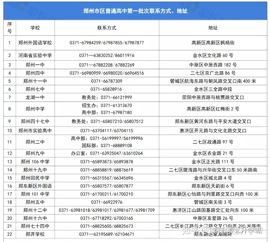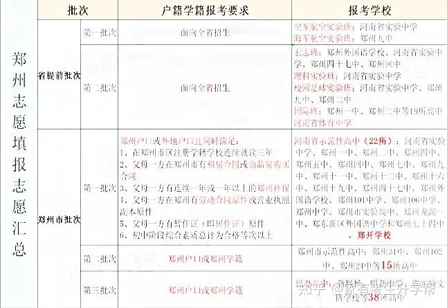 郑州市志愿填报汇总