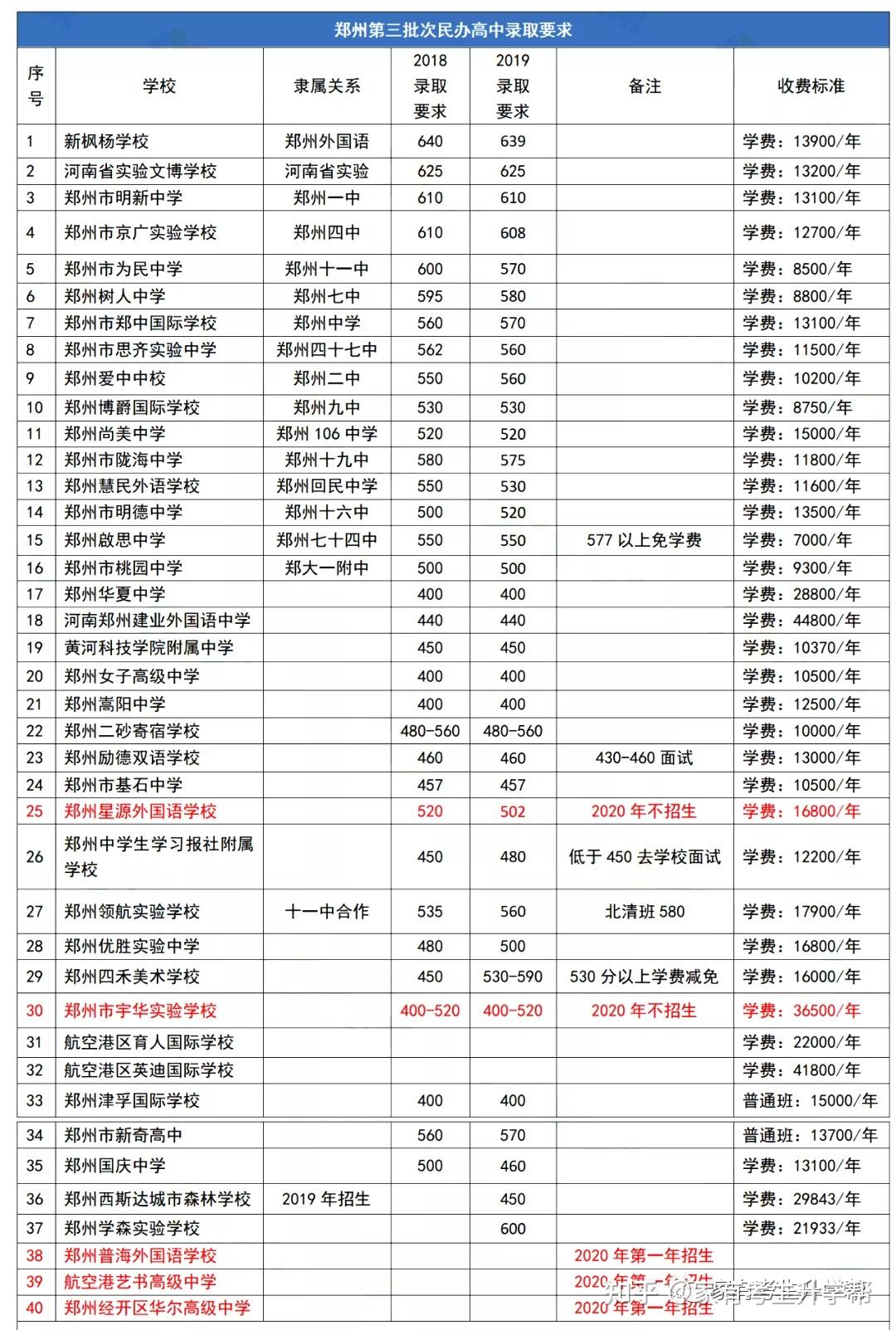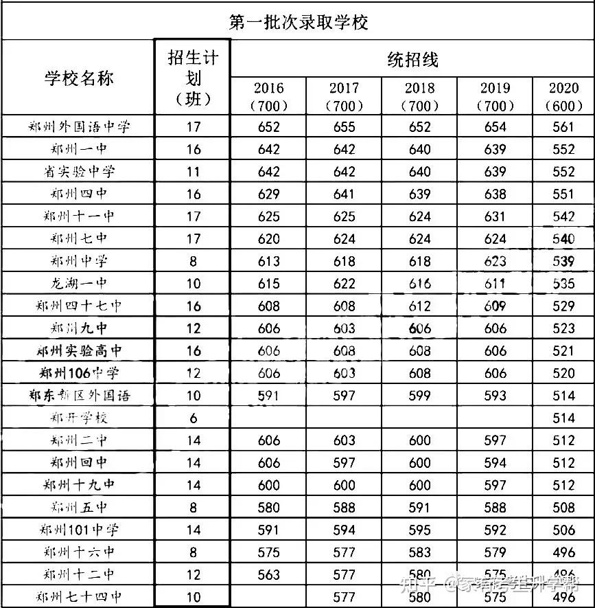 2020年郑州市各高中招生计划变动