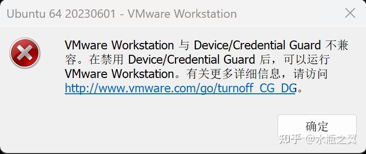 今天在一台新的笔记本电脑上(Win11 家庭中文版)安装 Ubuntu 虚拟机系统。本来是直接按照我自己前面写的 教程 安装即可。不过在创建完虚拟机后打开时出现了如下的报错:VMware Workstation 与 Device/Credential Guard 不兼容。