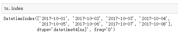 如果输入一个列表,则会输出成一个index类型。数据类型是datetime64[ns]纳秒,是numpy类型。freq是指的时间间隔,我们后面会讲。
