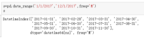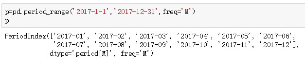 生成了时期序列,用月份隔开,每个都是单独的一个月,不是一个时间点。我们可以对比一些date_range。date_range则生成的是时间点。