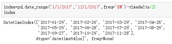 如果我们要以每个月的倒数第三个工作日进行分隔,可以像下面这样加上timedelta进行限定。定义好了index之后,减去timedelta(2)即可。