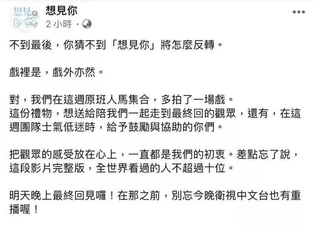 此前很多网友对大结局作了诸多讨论和猜想,没想到《想见你》的编剧最终以一种出乎意料的方式把莫比乌斯环圆了回来。
