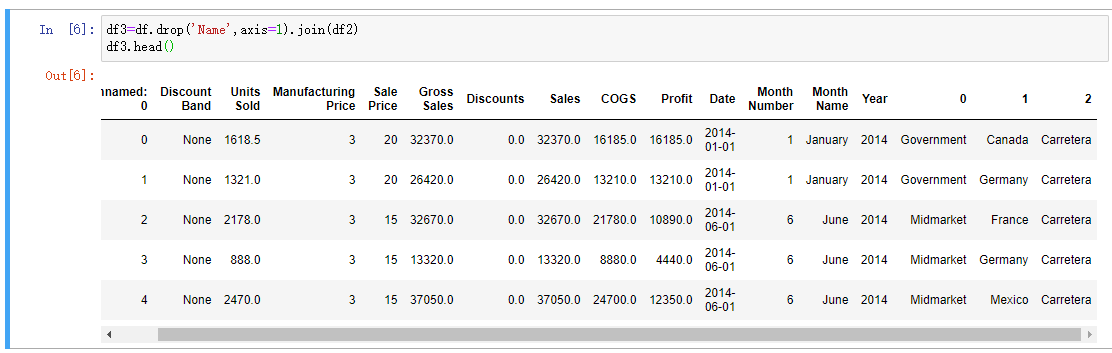 原表格按照列方向删除Name列,然后拼接df2水平连接。