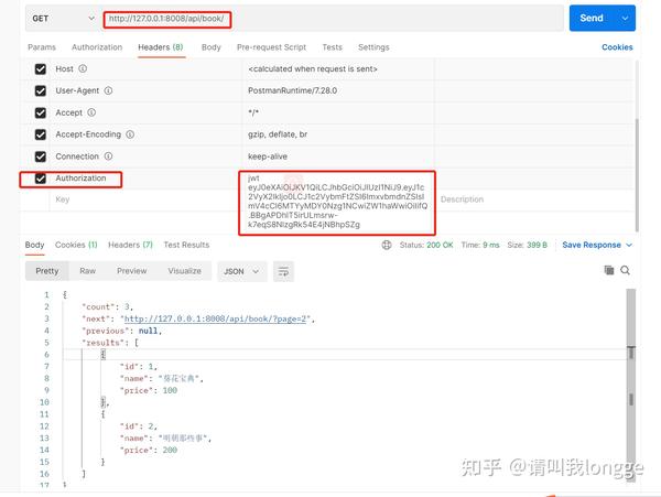 1- 在请求有里要写上: Authorization: jwt + 空格 + token字符串 #这里为什么要加上一个空格