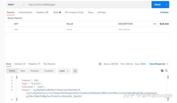 return Response({'status': 100, 'msg': '登录成功', 'token': token, 'username': username})