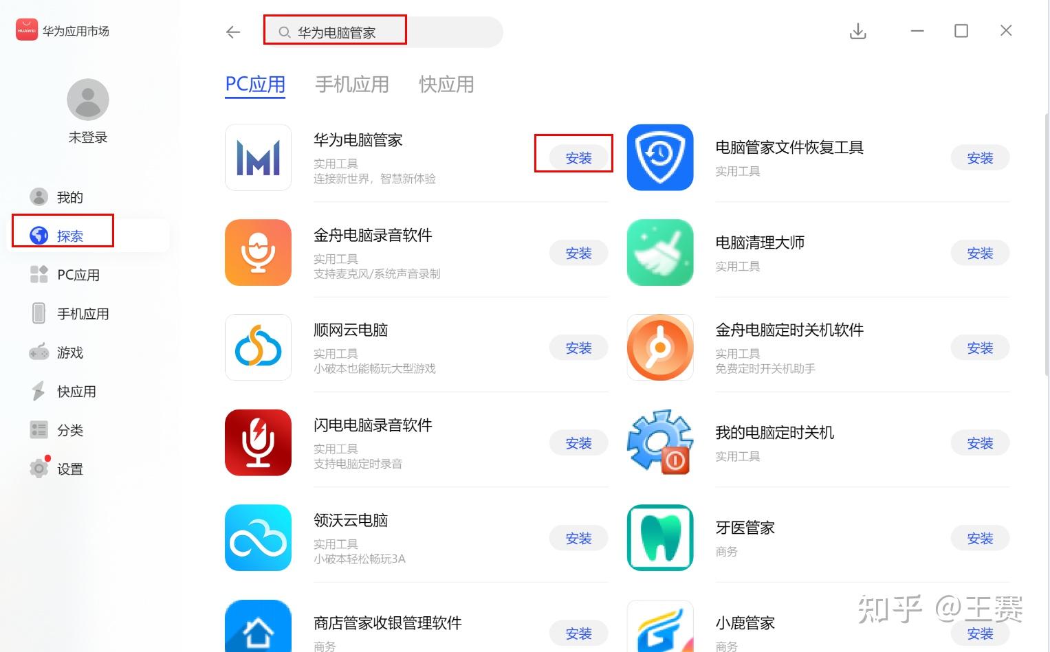 打开华为应用市场,搜索“华为电脑管家”,点击安装。下载后,按界面提示完成安装。