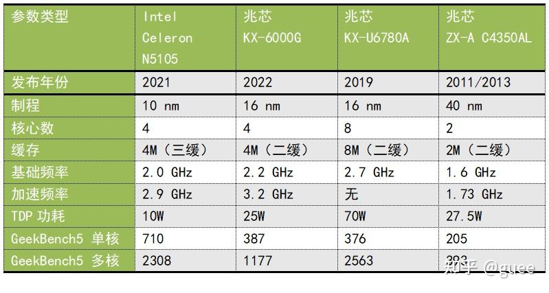 1. KX-6000G单核性能和多核性能都只有N5105的一半,同样都是4个核心。