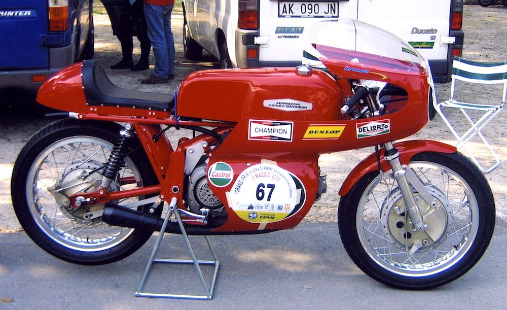 Aermacchi在二战结束后开始制造摩托车,并曾活跃于曼岛TT的250cc和350cc组别,并在五十年代和六十年代里取得了相当优秀的战绩。1960年,哈雷·戴维斯公司买下了Aermacchi摩托制造部门的50%股份。